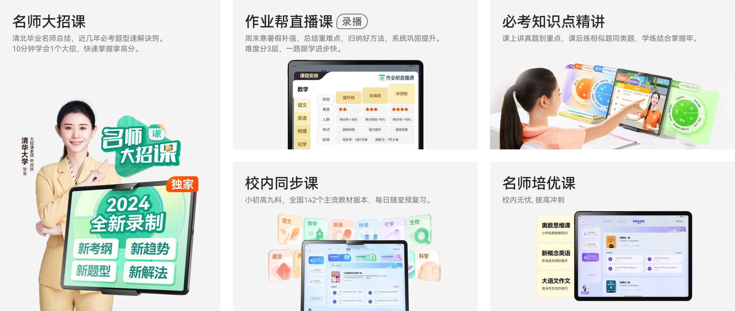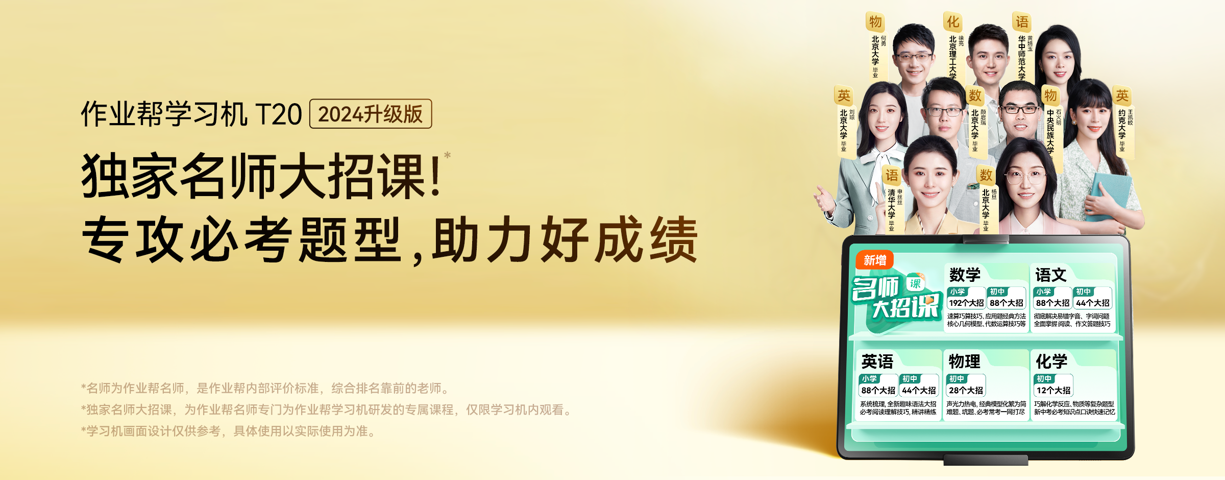 名师大招课:以市面专项提升课单科约1200元/学期为参考,3科(语、数、外);全年共分上、下两学期;1~6年级;1200*3*2*6=43200元